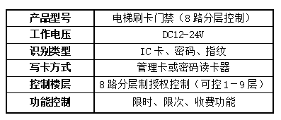 1、 全控型:實(shí)現(xiàn)樓層的粗放式管理,持卡人刷卡后可按鍵選擇到達(dá)任意樓層, 適合小區(qū)內(nèi)業(yè)主之間互相熟識(shí)的較多,互相串門情況較多的社區(qū)使用,如城中村改造、回遷樓、單位宿舍樓等,弊端在于無法有效控制樓內(nèi)的“租住戶”,尤其是這種城中村改造房,一般人家都會(huì)有2-3套房子,這些空余房子大多會(huì)出租給商務(wù)辦公用,這樣就造成了樓區(qū)的混亂情況,不建議采用這種方式;使用演示: