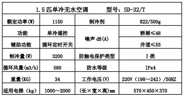 8、選擇性強,針對大小不同的轎廂載重量與不同的轎廂環(huán)境,公司分別研制出 1 匹單冷型、1.5 匹單冷型、1 匹冷暖型、1.5 匹冷暖型空調(diào),客戶可根據(jù)自身的轎廂條件選擇不同規(guī)格型號的電梯空調(diào);